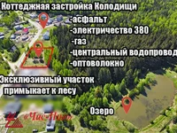 Жилая современная коттеджная застройка; все центральные коммуникации: асфальт до участка; свет 380 - 15 кВт, газ, центральный водопровод на участке, оптоволокно;