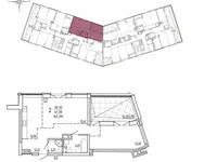 Двухкомнатная квартира с террасой 13,31м2 свободной планировки доме 3Б по Генплану в МК ФАРФОРОВЫЙ. Расположена на 14 этаже. На первом этаже - административно-торговое помещение. Восточная сторона.