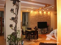 3-комнатная квартира, г. Брест, ул. Карьерная, 2005 г.п., 4 / 5 кирпич, 96,7 / 94,3 / 55,0 / 12,2, санузел совмещенный, лоджия застеклена, подвал с окном (в цокольном этаже), стеклопакеты, межкомнатные двери - массив, входная дверь - массив и металлическая, комбинированные многоуровневые натяжные потолки (2,90 м), полы - паркет (клен с мрамором), стены выравнены под покраску, декоративная отделка штукатуркой, отделка камнем, имитация кладки, в санузле современная плитка, ванна, джакузи, смесители Hansgrohe, инсталляция, подогрев пола, кондиционер, телефон, домофон. Встроенный кухонный гарнитур, бытовая техника Ariston (варочная панель, духовой шкаф, вытяжка, посудомоечная машина), обеденная группа из натурального дерева и стекла (Италия), диваны из натурально кожи (в гостиной), шкафы-купе (в коридоре, в детской комнате), гардеробная (в спальне), постирочная со стеллажами, подоконники из белого мрамора. Квартира с индивидуальными дизайнерскими решениями. Окна выходят на зеленую зону. Тамбур на одну квартиру. Дом оборудован сигнализацией. Смотреть подробнее