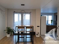 2-комнатная квартира, г. Брест, пр-т Республики, 2022 г.п., 5 + мансарда / 5 ж/б каркас + блок, 149,2 / 143,1 / 116,8 / -, два санузла, две лоджии застеклены, стеклопакеты, скрытые межкомнатные двери, входная дверь металлическая, потолки из гипсокартона (на втором этаже), полы - плитка и ламинат, есть подогрев пола (в холле, в гостиной, в кухне), стены окрашены, дубовая лестница, в санузле современная плитка, инсталляция, установлены скрытые смесители, автономный газовый котел, произведена разводка электропроводки, выполнена прокладка трасс кондиционирования, домофон. Встроенная кухня. Квартира с индивидуальным дизайнерским решением. Квартира расположена на две стороны. Чистый подъезд. Двускатная крыша. Смотреть подробнее