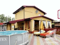 Дачный дом жилого типа в Брестском р-не. 2015 г.п. 1 этаж, мансарда. Общ.- 85,5 кв.м, 3 комнаты. Стены: материал - газосиликатный блок; отделка фасада - штукатурка "короед". Кровля: металлочерепица. Фундамент: ленточный монолитный; материал - бетон; подушка - бетонная. Коммуникации: отопление - газовый котел, газ - централизованный (в доме), водоснабжение - централизованный водопровод, скважина и гидрофор, электричество - централизованное, канализация - централизованная. Хоз.постройки: хозблок, вольер. Участок - 0,1014 га. Смотреть подробнее