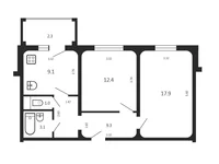 Общая площадь: 52.8 Жилая площадь: 30.3 Площадь кухни: 9.1