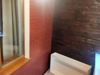 На полу паркет, окна выполнены из массива сосны с доводчиками.