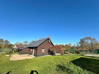 Дом оптимального размера с большой жилой комнатой ,прихожей, кухней. Дом из бруса, крыша – черепица. Фундамент – железобетонная лента. Окна – ПВХ стеклопакеты. Металлическая входная дверь.