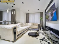 Квартира полностью оборудована всей необходимой мебелью и техникой (посудомоечная машина Bosch, телевизоры LG, система фильтрации воды, духовой шкаф, доводчики Blum, унитаз Abber Bequem с подогревом, функцией биде и импульсным смывом, кондиционеры Mitsubishi)