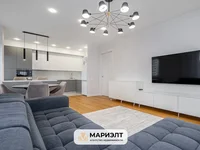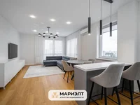 Интерьер квартиры выполнен в спокойной тёплой цветовой гамме. Отсутствие излишних деталей и элементов, наличие натуральных отделочных материалов, грамотные и удобные планировочные решения - всё это создаёт атмосферу уюта и комфорта. В отделке помещений и мебели использованы только премиальные экологически чистые, сертифицированные материалы ведущих европейских производителей, в том числе, вся бытовая техника.