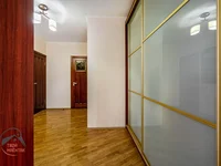 санузла, высота потолков 2.73 м. (общая площадь квартиры указана по СНБ). В комнате 27.9 кв.м. два окна, что дает возможность, при необходимости, выделить еще одну изолированную комнату. На сегодняшний день в этой комнате выполнено зонирование на спальную зону, где установлена встроенная кровать с диваном, и гостиную зону с комфортным диваном и телевизором. В квартире выполнен качественный ремонт: межкомнатные двери из массива, на полу в жилых комнатах и в большей части коридора паркет, при входе в квартиру и на кухне современный кафель с установленной системой теплый пол, высококачественная металлическая входная дверь, установлена встроенная кухня (фасады из массива) с техникой (посудомоечная машина Bosch, холодильник LIEBHERR, варочная поверхность AEG Electrolux, духовой шкаф Electrolux, вытяжка ELIKOR), три вместительных шкафа – купе (два в коридоре, один в спальне), качественные диваны, шкаф в одной из спален из массива, очиститель воздуха, стиральная машина Gorenje (возможна продажа со всей мебелью и техникой). Квартира продается с крытым парковочным местом, на котором можно
