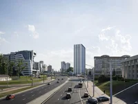 Дом расположен на пересечении проспекта Дзержинского и улицы Розы Люксембург, в нескольких минутах ходьбы от ул. Немига, вблизи станций метро «Грушевка» и «Площадь Франтишка Богушевича».