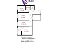 В квартире черновая отделка: полы со стяжкой и звукоизоляцией толщиной 30 мм, стены с улучшенной штукатуркой, а потолки - с ровной поверхностью без швов.