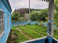 На участке в 4 сотки расположены компактный деревянный домик с мансардой , балконом и террасой, дровник, баня, утопающие в зелени.