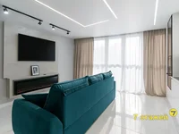 Квартира полностью готова к проживанию, оборудована всей необходимой бытовой техникой и мебелью с современным интерьером. Панорамные окна в пол открывают потрясающий вид на город.