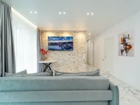 В квартире выполнен ремонт с применением высококачественных современных материалов: натяжные потолки с подсветкой, пол – испанская плитка с подогревом (частично), межкомнатные двери с магнитными замками и скрытыми петлями, качественная входная металлическая дверь. На всех окнах установлены маскитные сетки. Оборудованы