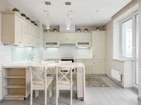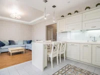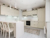 Итальянская и испанская плитка, паркетная доска. Венецианская штукатурка на потолках, кухня под заказ, поверхность кухни-натуральный камень, фартук- закаленное стекло, фурнитура BLUM, мебель спальня инд.заказ Польша, вся мебель на заказ, полностью сделанная электрика, все люстры Италия, светильники светодиодные.