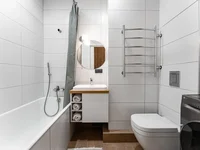 4. Санузел: новая сантехника, включая смесители и инсталляцию Grohe, стиральная машина LG и бойлер на 100 литров.