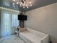 В квартире сделан евроремонт: пол в комнатах - ламинат, в санузле и на кухне – плитка, в комнатах поклеены обои, по всей квартире установлены натяжные потолки. В квартире есть просторная застекленная лоджия. На кухне установлен современный кухонный гарнитур с бытовой техникой: варочная панель, духовой шкаф, вытяжка.