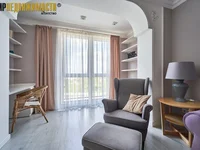 В квартире 2 изолированные комнаты, просторная кухня-гостиная с выделенной рабочей зоной. Два совмещенных санузла, один из которых оснащен душевой кабиной, второй - ванной. Квартира полностью укомплектована всей необходимой мебелью и техникой: посудомоечная, стиральная машина, духовой шкаф, телевизоры, электрокамин. Панорамные окна.