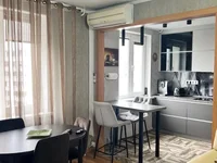 • СП, встроенная кухня, подвесные потолки с подсветкой, двойная железная входная дверь, ламинированные полы, 2 кондиционера, видеодомофон;
