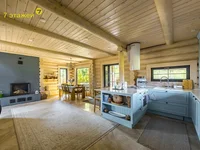 Роскошный дом "под ключ" с великолепно организованным внутренним пространством и новым дизайнерским ремонтом. ЭКО-дом построен из 200сотого профилированного бруса. Мягкая кровля двухслойная. Стеклопакеты деревянные.