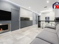 - Просторная гостиная, объединяющая в себе зоны отдыха, кухни и столовой, наполняет чувством свободы и лёгкости. Комфортабельный диван и камин делают эту зону идеальной для семейных вечеров и встреч с друзьями.