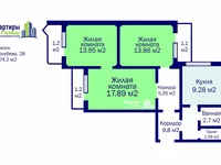 Спальня: площадью 13.95 м2. Установлен просторный шкаф, который заменит полноценную гардеробную и уютное спальное место. Из спальни имеется выход на ещё одну лоджию, площадью 1.2 м2, что позволяет организовать дополнительное место для хранения.