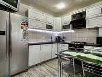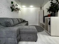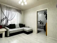 - Качественные материалы: окна ПВХ обеспечивают отличную тепло- и звукоизоляцию. В квартире выполнена стяжка, на полу — ламинат. В кухне, коридоре и гостиной установлены натяжные потолки, что придаёт квартире современный вид.
