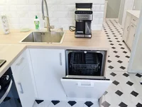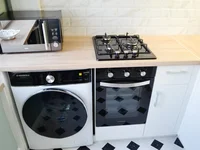 В квартире встроенная кухня с современной импортной техникой: варочная газовая поверхность, электрический духовой шкаф, вытяжка, посудомоечная машина, стиральная машина, холодильник, микроволновая печь, электрочайник, кофемашина. В гостиной телевизор. Установлена система фильтров для воды.