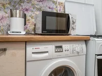 Квартира оборудована кухонной мебелью и всей необходимой бытовой техникой.