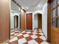 Входная дверь металлическая. Просторный коридор 8,48м2. На полу плитка, потолок подвесной, на стенах декоративная штукатурка. Есть вместительный встроенный шкаф.