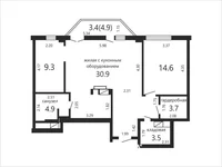 Площадь по СНБ: 79.4 м² Общая площадь: 76 м² Жилая площадь: 54.8 м² Высота потолков: 2.7 м