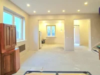 -Внутри дома, на первом уровне произведена чистовая отделка потолков и стен качественной и красивой "венецианской" штукатуркой. Пол утеплён, залит стяжкой и готов к окончательной отделке. На втором уровне всё подготовлено к чистовой отделке.