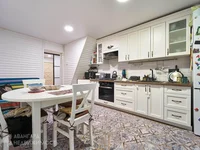 Дом бревенчатый, облицован кирпичом и обшит блок-хаус панелями – отличная теплоизоляция, отсутствие шума; зимой тепло, а летом прохладно. Кровля – металлочерепица.