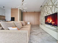 В отделке и наполнении квартиры использовались высококачественные современные материалы, техника, оборудование. Ремонт, мебель, техника вотличном состоянии! Полы – паркетная доска, керамогранит (полы в зоне плитки с подогревом, четыре зоны: кухонная, два c/у и коридор). Встроенная кухня оборудована духовым шкафом, посудомоечной машиной, варочной панелью, вытяжкой, холодильником. Техника и оборудование Samsung, LG, AEG. В гостиной установлен кондиционер. Вся встроенная мебель под заказ. Мягкая мебель Furman, Sofa Club. Вся сантехника Villeroy & boch (ванная, раковины, подвесные унитазы, инсталяции), все смесители Grohe.