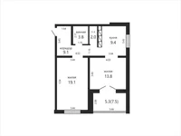 • Грамотная планировка: Полноценные две комнаты (19,1 м² и 13,8 м²) и светлая кухня (9,4 м²).