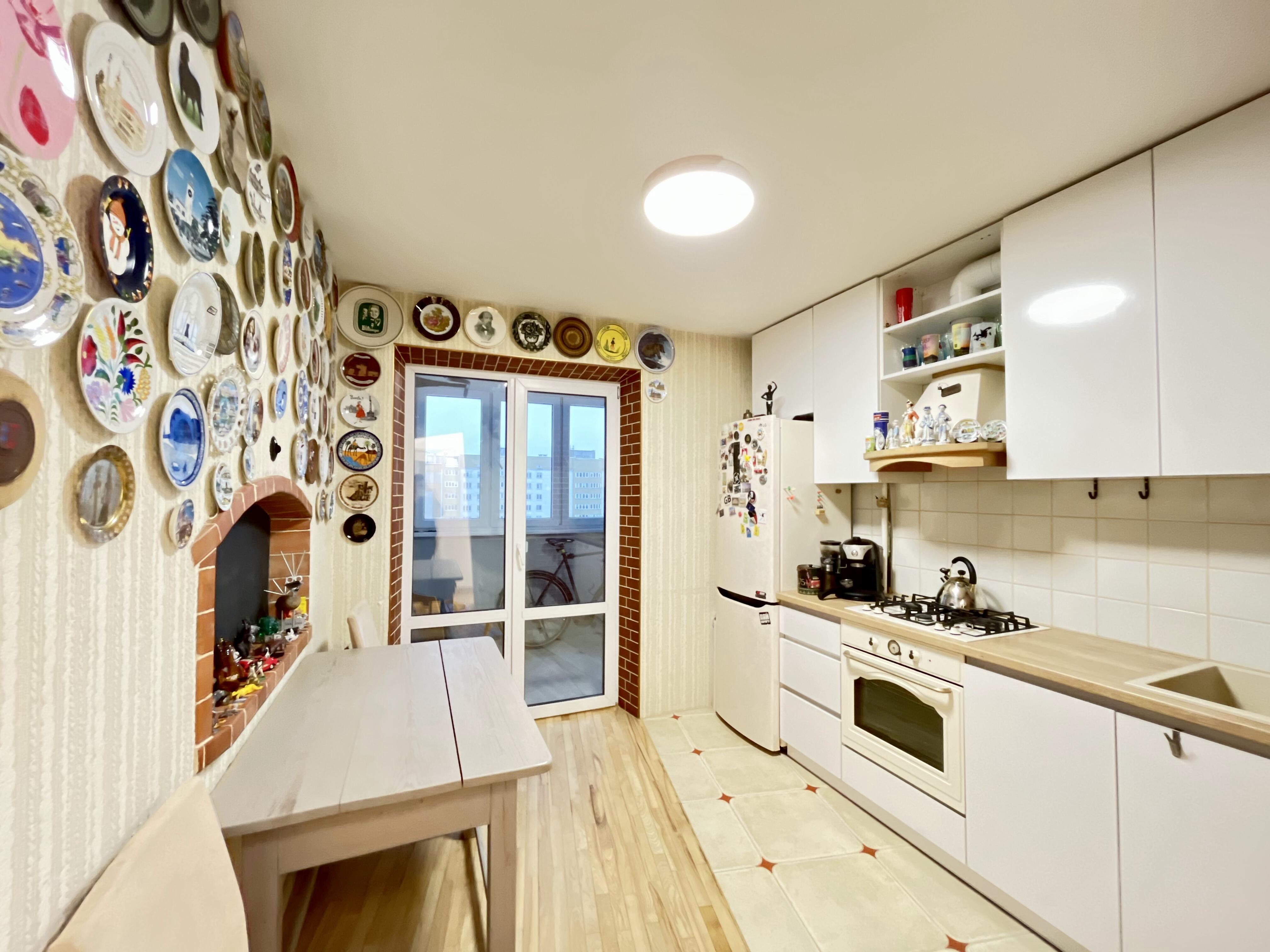 Просторная планировка: площадь по СНБ 56.1 кв.м., зал 17 кв.м., и спальня 12.3 кв.м, кухня кв. 8.8 м., лоджия из кухни с зоной отдыха. Удобный средний этаж. Просторный коридор с большим встроенным шкафом.
