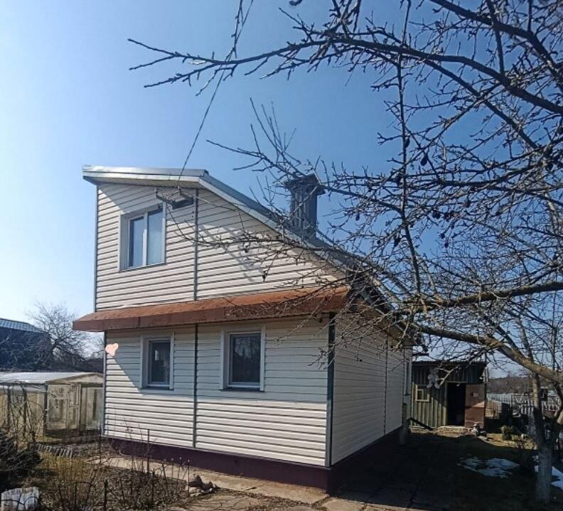 В 40 км от Минска продается 2-х этажный дом в СТ"Строймаш", Минская область, Пуховичский р-н, Пережирский с/с. Дом бревенчатый, обшит белым сайдингом, крыша-металлочерепица. Подходит для круглогодичного проживания, т.к. есть печь и камин. Удобная лестница на второй этаж. Кухня с газовой плитой, холодильником, бойлер подогрева воды. Рядом с домом располагается уютная беседка с виноградником. На территории возле дома есть сарай с нужным инвентарем(лопата, грабли, вилы и т.д.), кабинка с летним душем, приличная уборная, есть навес для хранения дров. Много плодовых деревьев, клубника, голубика. Также к вашему распоряжению теплица и небольшой огород. Территория огорожена высоким забором, вдоль которого высажены зеленые туи. Рядом с садовым товариществом лес - березнячок, недалеко водоем и озеро с оборудованным пляжем. Звоните! Этот уютный теплый дом ждет именно вас!!!