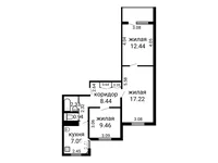 Общая площадь квартиры составляет 58.9 кв.м, жилая площадь — 39.12 кв.м, кухня — 7.08 кв.м, что обеспечивает достаточно места для всей семьи. Высота потолков 2.54 м.