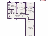 - Три раздельные жилые комнаты, площадью 17,6 м2, 11,6 м2 и 11,0 м2.