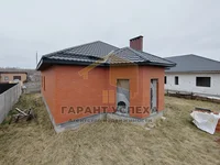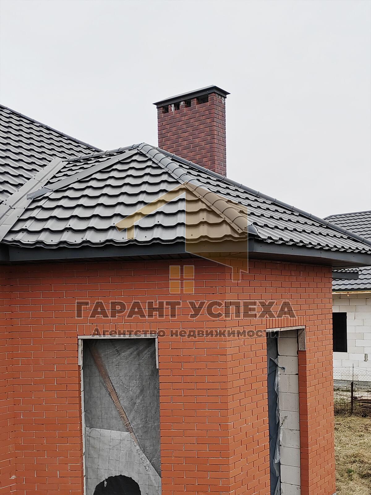 Здание общей площадью 115,9 кв.м имеет имеет монолитный фундамент с демлерными блоками, стены выполнены из газосиликатных блоков (30 см), утеплены минватой и обложены керамическим кирпичём. Помещение кухни и топочной выложены их красного огнеупорного кирпича. На вальмовую крышу уложена качественная металлочерепица. На полу залита черновая бетонная стяжка, внутри проведена разводка канализации.