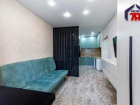 -Планировка – гибкая и функциональна. Жилая комната разделена с кухней перегородкой, создавая два отдельных пространства, но сохраняя ощущение открытости. На кухне установлен современный кухонный гарнитур со встроенной техникой (плита, вытяжка, микроволновка), позволяя готовить удобно и эффективно. Кухня компактна, но функциональна, каждый сантиметр использован оптимально.