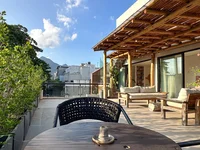 Гостиная открывается на великолепную террасу, купающуюся в естественном свете. Это открытое пространство, тщательно обставленное удобными диванами, приглашает вас отдохнуть с миром. Небольшой столик на двоих позволяет наслаждаться завтраком, любуясь восходом солнца. Это социальное пространство идеально подходит для развлечения, проведения вечеринки, проведения времени с семьей или друзьями, наслаждаясь видом на улицу.
