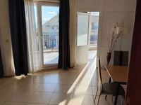 Помещение состоит из просторной гостиной с кухонной зоной, двух спальней, двух ванной комнат с туалетом и двух террас с видом на море и бассейн.