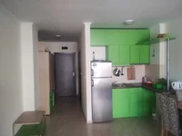 Квартира расположена в коридоре с встроенным шкафом и просторной студией с жилой зоной и кухонным уголком. В жилой зоне есть диван, кухня полностью оборудована.
