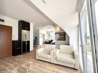 Предлагаем просторный меблированный трёхкомнатный мезонет с частичным ВИДОМ НА МОРЕ в комплексе Stella Polaris на курорте Солнечный Берег.