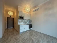 The flooring is fitted with luxurious tiles. The apartment is equipped with a washing machine, a refrigerator, and an oven. All appliances are unused and brand new. The apartment is air-conditioned and ready to be furnished to your liking.