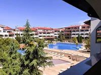 We offer for sale a spacious 2-bedroom apartment in the prestigious beachfront Casa Real complex in Sveti Vlas. The apartment is located on the 3rd floor and consists of a living room with kitchen, including a nook that can serve as an additional sleeping area, two bedrooms, bathroom, and two terraces, one of which has a partial sea view.