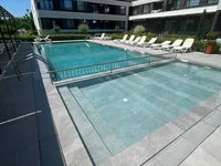 Квартира имеет площадь 50 м² и расположена на 5 этаже. Она полностью меблирована роскошной мебелью, элегантно оформлена и предлагает прекрасный вид на бассейн.