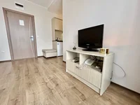 Эта комфортабельная и современно оборудованная квартира впечатляет своей функциональной планировкой, дружелюбной атмосферой и тихим расположением внутри одного из самых популярных комплексов в Солнечном берегу.