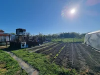 Двор включает в себя хозяйственные постройки, баню, гараж, мастерскую под большим навесом, парковочные места, большую теплицу и частный колодец. Участок прекрасно поддерживается ирригационной системой, декоративными растениями, фруктовыми деревьями и различными другими плодоносящими культурами.