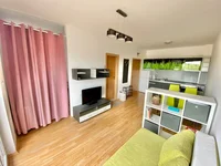 Квартира выполнена в функциональном стиле и состоит из жилой зоны с встроенной кухней, спальни, ванной комнаты с душем и балкона с видом на окружающие поля. Открытая планировка создает приятное ощущение простора и обеспечивает оптимальное использование площади — идеально подходит как для отдыха, так и для выгодного инвестирования.