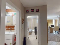 Спальня расположена тихо и оформлена со вкусом, с большой кроватью, шкафом для одежды и дополнительными местами для хранения. Тёплая и гостеприимная цветовая гамма создаёт расслабляющую атмосферу.
